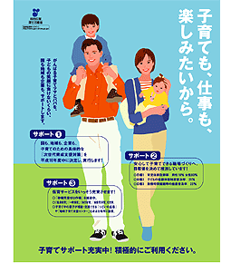 PR誌、パンフレット、広告等で使用した女性とファミリーのイラストです。